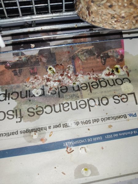 A todos mis canarios les hice un tratamiento preventivo contra coccidios usando baycox hace dos meses. Después una desparasitacion interna. Todos excepto estos dos muestran cacas normales.